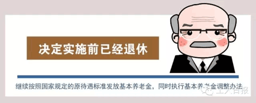 決定實施前已經(jīng)退休的人員,繼續(xù)按照國家規(guī)定的原待遇標(biāo)準(zhǔn)發(fā)放基本養(yǎng)老金,同時執(zhí)行基本養(yǎng)老金調(diào)整辦法。
